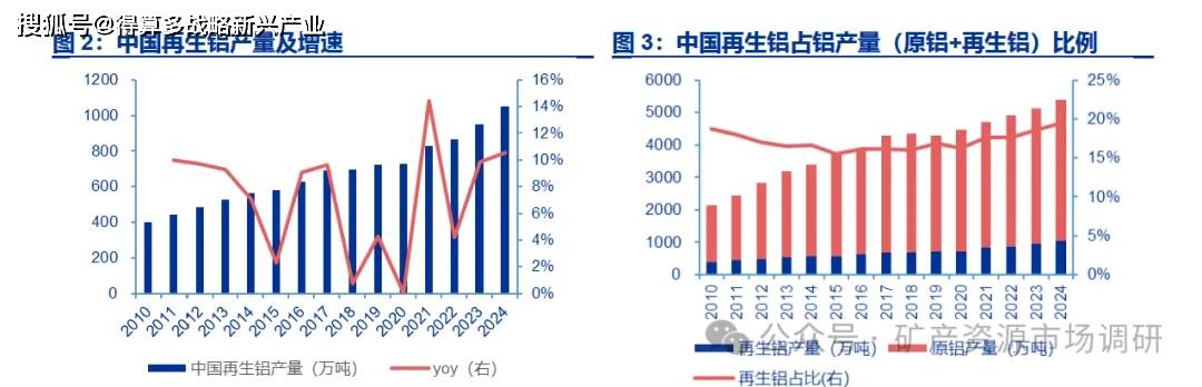 相比国际再生铝占比与产业成熟度,中国存在显著提升空间。2024 年中国再生铝产量 1050 万吨,占国内铝供应总量的比重不足 20%,远低于欧美发达国家。当前国内再生铝产业以中小企业分散回收为主,尚未形成规模化、智能化的回收网络。反观欧美,已通过强制规定联邦基建项目中再生金属使用比例、减税优惠等政策推动产业升级;印度、东南亚等国也通过进口废铝抢占原料资源。因此,中国需加快构建“互联网+回收”智慧体系提升分选精度与循环效率,才能实现从“量变”到“质变”的跨越,追平国际水平。