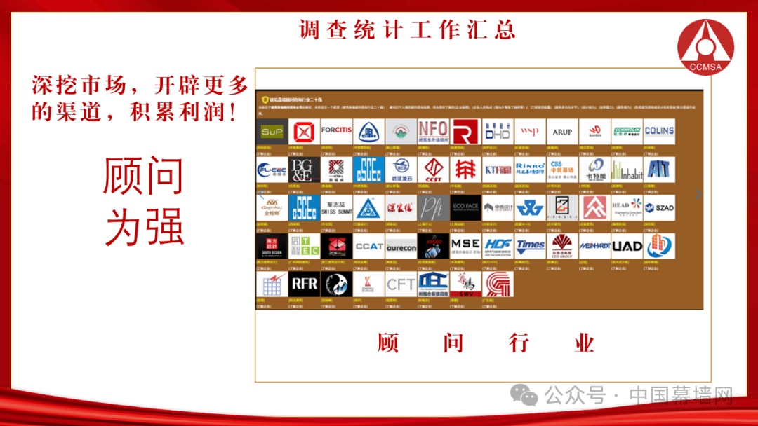 也开展了针对房地产企业的调研工作;还深入各大建设设计院所及咨询企业等。2023年共走访产业链企业近160家,深入调研门窗幕墙行业的产品研发、应用推广及市场运营情况,与被调研企业高层会晤,开展深入交流。