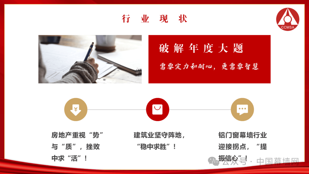 今年以来,我国经济总体回升向好,高质量发展扎实推进,门窗幕墙行业的发展也来到了历史的全新节点。今天的行业要看到成绩、坚定信心,也要正视问题、直面挑战。